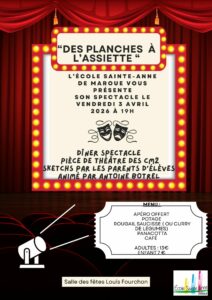 1 place »Enfant » pour la soirée »Repas – Théâtre » du Vendredi 3 Avril 2026.